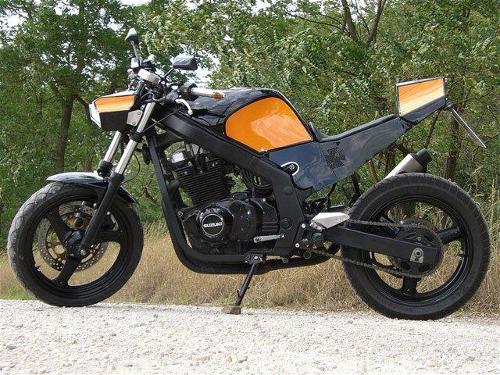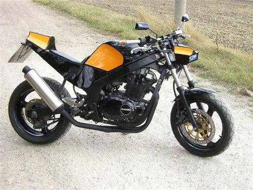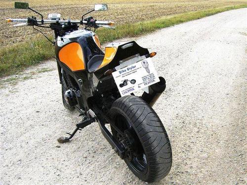 * Hinterrad von 140 auf 180 * Auspuff * Lenker * Beleuchtung * Scheinwerfergehäuse * Schutzblech * Heck (Schutzblech und Heck = Einzelanfertigung